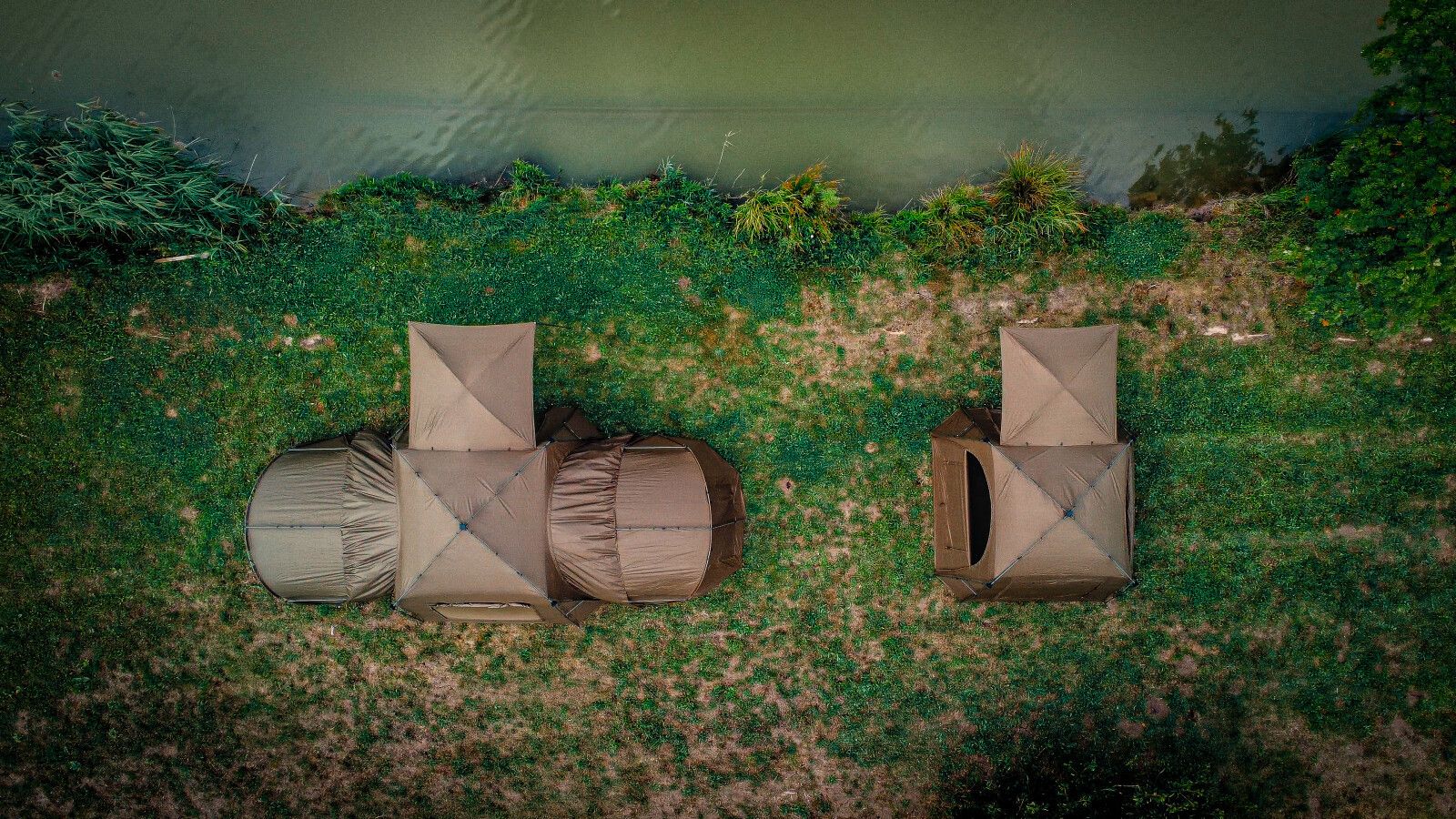 - K přístřešku Base Camp lze pomocí Bivvy Connection Kitu připojit jakýkoliv bivak nebo brolly na trhu