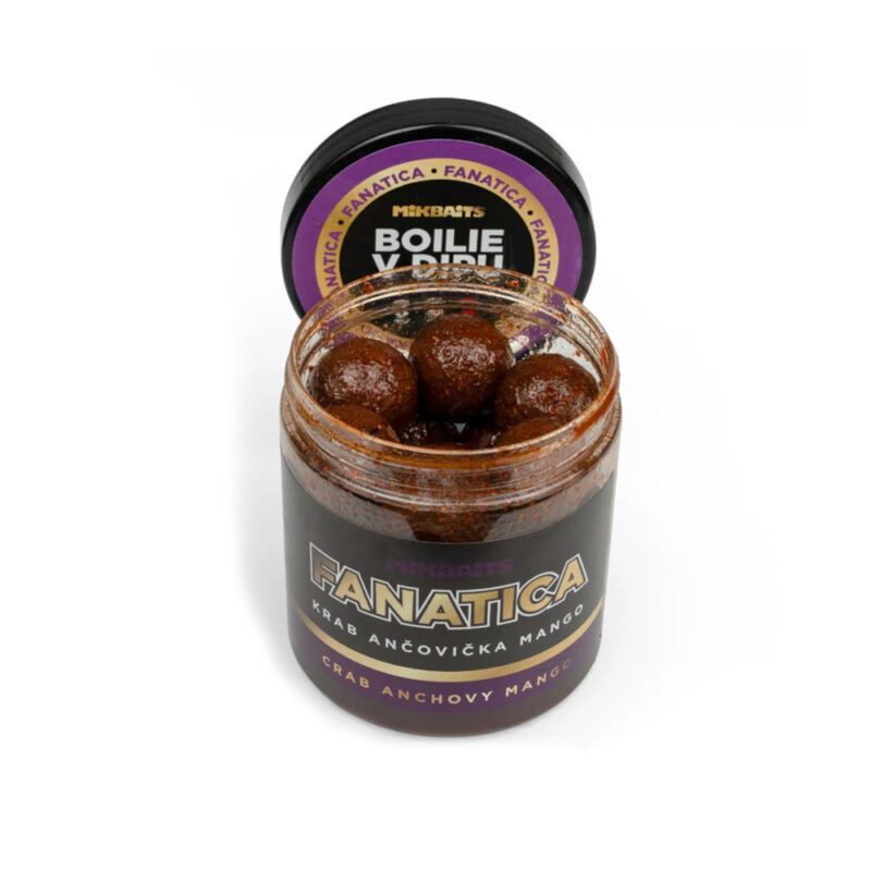 Fanatica Krab Ančovička Mango je sexy ségra legendární G2. Směs Fanatica je totiž velmi podobná jako Gangster, ale navíc obsahuje Robin Red a malou dávku Chilli papriček. Když k tomu přidáte fenomenální britskou esenci Crab, skvělý ančovičkový extrakt, nádherně vonící Mango a extra silný originální EO Black Pepper, dostanete do ruky mocnou zbraň, která jednak umí dělat spousty záběrů, ale zároveň dokáže lovit i ty největší ryby. Hned při prvním nasazení na závodech na S2H na Pálavě jsme s ní ulovili kapra přes 25 kg. Vynikajících výsledků jsme s tímto boilie dosahovali i na Labi, pískovnách a jiných typech vod. A to od brzkého jara prakticky do zamrznutí. Fanatica Krab Ančovička Mango je udělaná tak, aby fungovala i s hrstí návnady, ale je též skvělá ve chvíli, kdy s ní budete vnadit víc. Přes svoji celkem výraznou vůni je to především vysoce hodnotné boilie s nízkými dávkami esencí, tak aby fungovalo dlouhodobě nebo při silném vnadění, kdy bude do vašeho loviště přitahovat stále víc velkých ryb.