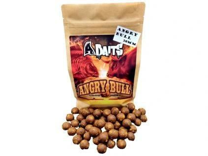 Vlastnosti boiliesu : Vývoj a testovanie boilies Angry Bull bolo viac ako 2. roky kým sa spustil jeho predaj. Boilies má dosť unikátnu štruktúru receptu. Má mäsovo - pečeňový základ a podtón dolaďuje cesnakový extrakt (nie aróma). Bol tvorený hlavne na zotrvanie ryby na kŕmnom mieste aj keď je hladina narúšaná rôznymi vplyvmi napr. člnmi, prevážkami a pod. Má rôzne doplnkové zložky ako Betain, výťažok z chilli, atraktant DMPT silne stimuluje čuch, chuť, pohyblivosť rýb a odolnosť voči stresu. Neoddeliteľnou súčasťou je mix Robin Orange a Robin Gold, ktorý dodáva nástrahe výraznú korenistosť. Má jedinečnú vôňu a chuť ktorú žiadny iný boilies nemá. Jeho selektívnosť a detailné zloženie nám pomohlo na IBCC obhájiť v sektore 1. miesto, kde sa týmto boiliesom podarilo udržať ryby na lovnom mieste.