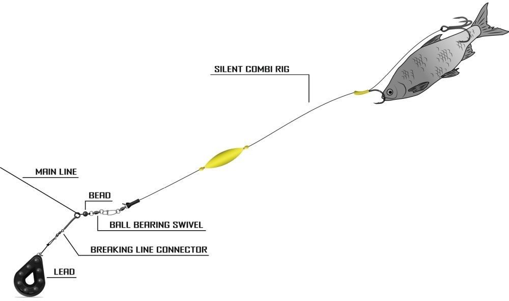 Hotový náväzec Waller Spezial od Stefana Seussa. Náväzec „Silent Combi Rig“ sa výborne hodí na prentáciu nástražných rýb a iných prírodných nástrah tesne nad dnom na vodách so silným rybárskym tlakom.