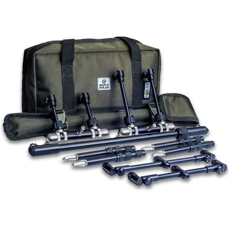 Solar Blacklite Worldwide Pod, kompaktný, neuveriteľne dobre vyzerajúci a čierny, BlackLite Worldwide Pod odpovedá na volanie po kráse a funkčnosti nášho Stainless v ľahkej zliatinovej verzii... presne to, čo trh vyžaduje! Na základe nášho celosvetového bestselleru ponúka BlackLite Worldwide solárny výkon za zlomok hmotnosti. Pomocou jedinečného račňového systému Solars (ktorý sme ponechali v našej DNA Stainless Steel, aby sa nepoznačil rozšíreným používaním, na ktoré je stojan navrhnutý), je výška nastaviteľná spolu s dĺžkou a šírkou, aby vyhovovala väčšine rybárskych situácií. Podpery sú v štýle bránky a dodávajú bzučiakom neuveriteľnú tuhosť. Navyše bezpečnostné body vpredu a vzadu znamenajú, že nikam nevedie! BlackLite Worldwide Pod je dodávaný s párom 3-tyčových nastaviteľných bzučiakov, ktoré vám poskytnú kompletnú skrytú, kompaktnú súpravu[1], akú požadujete!