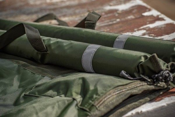 Náš retainer/Weigh Sling, ktorý je schopný poňať aj tých najväčších kaprov, má plávanie po celej dĺžke s reflexnými pásikmi. Ešte lepšie je, že sa môže pochváliť našou neuveriteľnou reflexnou šnúrou, ktorá sa rozsvieti ako reťaz vianočných LED diód v akomkoľvek lúči baterky. Toto je úhľadne umiestnené v samostatnom vrecku na zips v prednej časti praku, bezpečne mimo cesty, kým ho nebudete potrebovať. Vyrobené z ultrapevného materiálu, ktorý je šetrný k rybám, s „rýchlo odvodňovacími“ sieťovými časťami na dne.