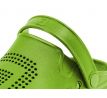 Ďalším sofistikovaným prvkom sú veľké postranné otvory, ktorých prioritnou úlohou je starať sa o odvetrávanie a celkovú vzdušnosť v tejto obuvi. Zámerne nie sú navrhnuté vo výške podrážky, ako to býva štandardom, ale o niečo vyššie. Práve tento detail zohráva významnú úlohu počas pobytu na brehu, či plytkej vode. Tým, že otvory sú o niečo vyššie nad vnútornou stielkou je takmer eliminované nechcené naberanie piesku či kamienkov medzi podrážku a chodilo. Vaše chodidlá sú teda chránené v maximálnej možnej miere. Okrem týchto otvorov slúži na odvetrávanie hustá perforácia umiestnená vo vrchnej časti. Tá je zámerne vytvarovaná na jednej strane do symbolu D z loga Delphin, na druhej vsuvke zase kraľuje symbol O, ako počiatočné písmeno názvu OCTO. Celkový dojem ešte zhodnocuje jemná štruktúra na povrchu šľapiek, ktorá evokuje kožu chobotnice. Vďaka použitému EVA materiálu sú mimoriadne ľahké, húževnaté a dokonca plávajúce. Samozrejmosťou je u tohto modelu popruh na fixáciu päty (ľudovo nazývané aj uzávierka), ktorý oceníte najmä v nerovnom, či svahovitejšom teréne.