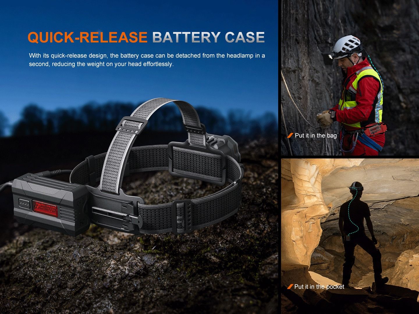 - Pre ľahké uchytenie na prilbu je možné dokúpiť držiak Fenix ALG-03, ALG-04.