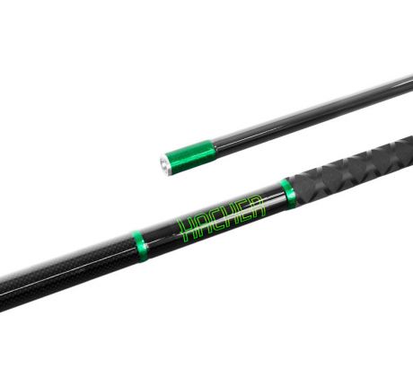 Dvojdielna teleskopická tyč HACKER s dĺžkou 210cm je vyhotovená z odolného a pevného 24T karbónu. Rukoväť je vyhotovená z príjemného materiálu NEO-FOAM, vďaka ktorému sa ani mokrá ruka z podberáka nezošmykne a ponúka suverénne uchopenie. HACKER sa vyznačuje použitými zelenými detailami z viazacej nite nad rukoväťou, kde nájdeme aj informácie o dĺžke, materiáli a názov produktu. Spodný diel tyče má čierne 3D karbónové zdobenie, vrchný diel má čiernu lesklú úpravu. Zelený konektor na pripojenie hlavy podberáka má štandardný závit, vďaka ktorému pripojíte väčšinu podberákových hláv na trhu. HACKER si istotne obľúbia priaznivci pretekárskeho lovu pstruhov, tzv. Trout Area, ale aj všetci tí, ktorí si potrpia na kvalitnú podberákovú tyč, ktorá má fantasticky zvolenú dĺžku.