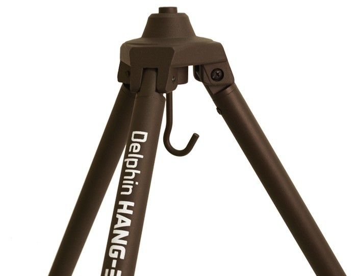 Už na prvý pohľad zistíte, že sa jedná o výnimočnú kvalitu. Trojnožka je zabalená v textilnom transportnom puzdre hnedej farby. V hnedom odtieni sa nesie aj samotná trojnožka. Jej prášková farba je veľmi odolná a trvácna. Nohy sú tvorené trubkami v priemere až 25mm!  V nich sú zasunuté ďalšie o priemere 20mm. Na ich konci sú hroty, ktoré zastabiluzujú trojnožku v akomkoľvek teréne.  Vysúvanie nôh a ich zaistenie prebieha pomocou masívnych klipových mechanizmov. Nohy trojnožky sú na vrchu spojené centrálnym kovovým odliatkom, v ktorého spodnej časti sa nachádza silný hák pre zavesenie vaku s úlovkom. Delphin HANG-3 je trojnožka, ktorá vás nesklame ani v extrémnych podmienkach!