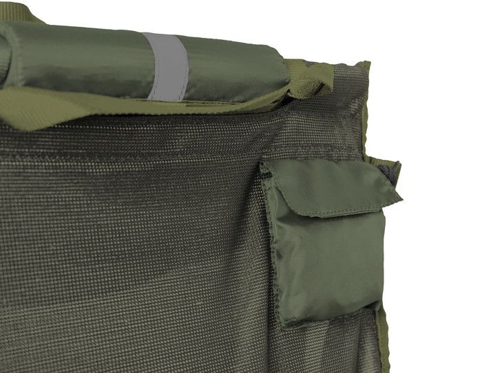 Vážiaca taška vyrobená z pevného sieťovaného materiálu, ktorú možete vďaka plavákom a sieťovanému materiálu použiť aj ako prechovávací sak pred tým, ako rybu zvážite, či pustíte. Vďaka reflexným páskam na plavákoch uvidíte tašku po zasvietení čelovkou vo vode aj po tme. Sieťovaný materiál okrem toho znižuje celkovú hmotnosť tašky a pri dvíhaní a manipulácii s rybou všetka voda vytečie, teda nepreťažuje sa materiál a umožňuje aj presnejšie váženie. Masívny zips je po oboch bokoch tašky a takisto na vrchnej časti, to znamená, že WSM dokážete takmer celú rozzipsovať pre príjemnejšiu manipuláciu s rybou. Pevné hliníkové trubky s priemerom 25mm je možné bez problémov zložiť, aby pri transporte nezaberali miesto. Vďaka dlhým textilným popruhom je zavesenie na trojnožku veľmi komfortné a jednoduché. Tieto popruhy majú kovové oká na zavesenie tašky na hák váhy a pod. Na bežné prenášanie poslúžia štyri kratšie popruhy v rohoch tašky. Samozrejmosťou je kotviaca šnúra s dĺžkou až 4,5m a so závitom na konci. Vďaka tomuto systému je kotvenie na brehu veľmi bezpečné. Šnúra je umiestnená v integrovanom a diskrétnom vrecúšku na boku tašky. Vo vrchnej časti a takisto na boku sa nachádza klip, ktorý slúži na fixovanie bežcov zipsa, aby nedošlo k neželanému otvoreniu tašky, alebo je možné klipy použiť ako ďalšie body na kotvenie.