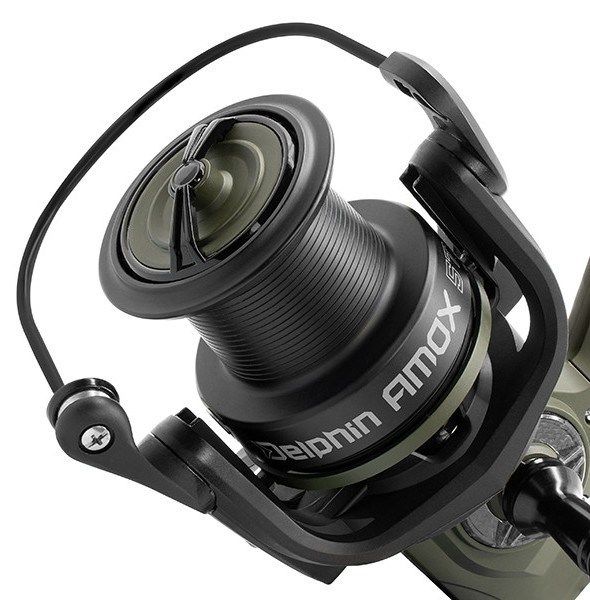 - AMOX je designovaný do matnej zelenej farby v kombinácii s čiernou, ktoré sú doplnené lesklými časťami, zaujímavými karbónovými prvkami a efektnými výrezmi na tele navijaka.