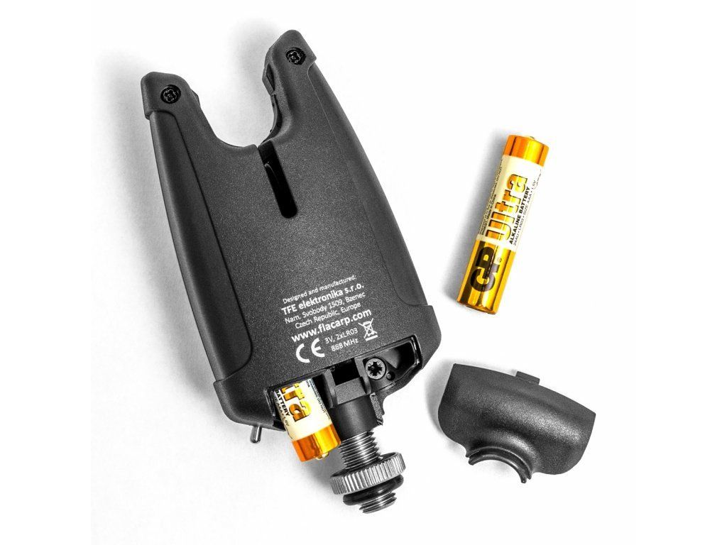 Signalizátor záberu českej značky FLACARP, obdobný ako typ FLACARP F1 alebo X7 s tým rozdielom, že nemá integrovaný vysielač bezdrôtového príposluchu.