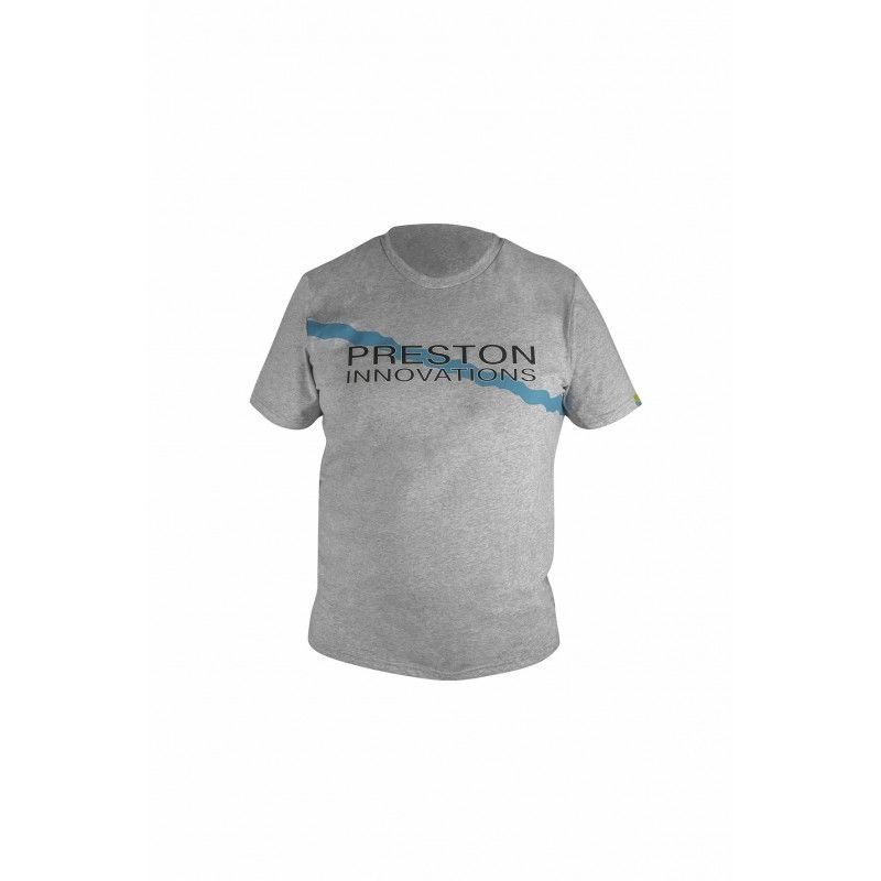 Tričko svetlo šedej farby s veľkým potlačou vpredu. Vyrobené zo 100% bavlny